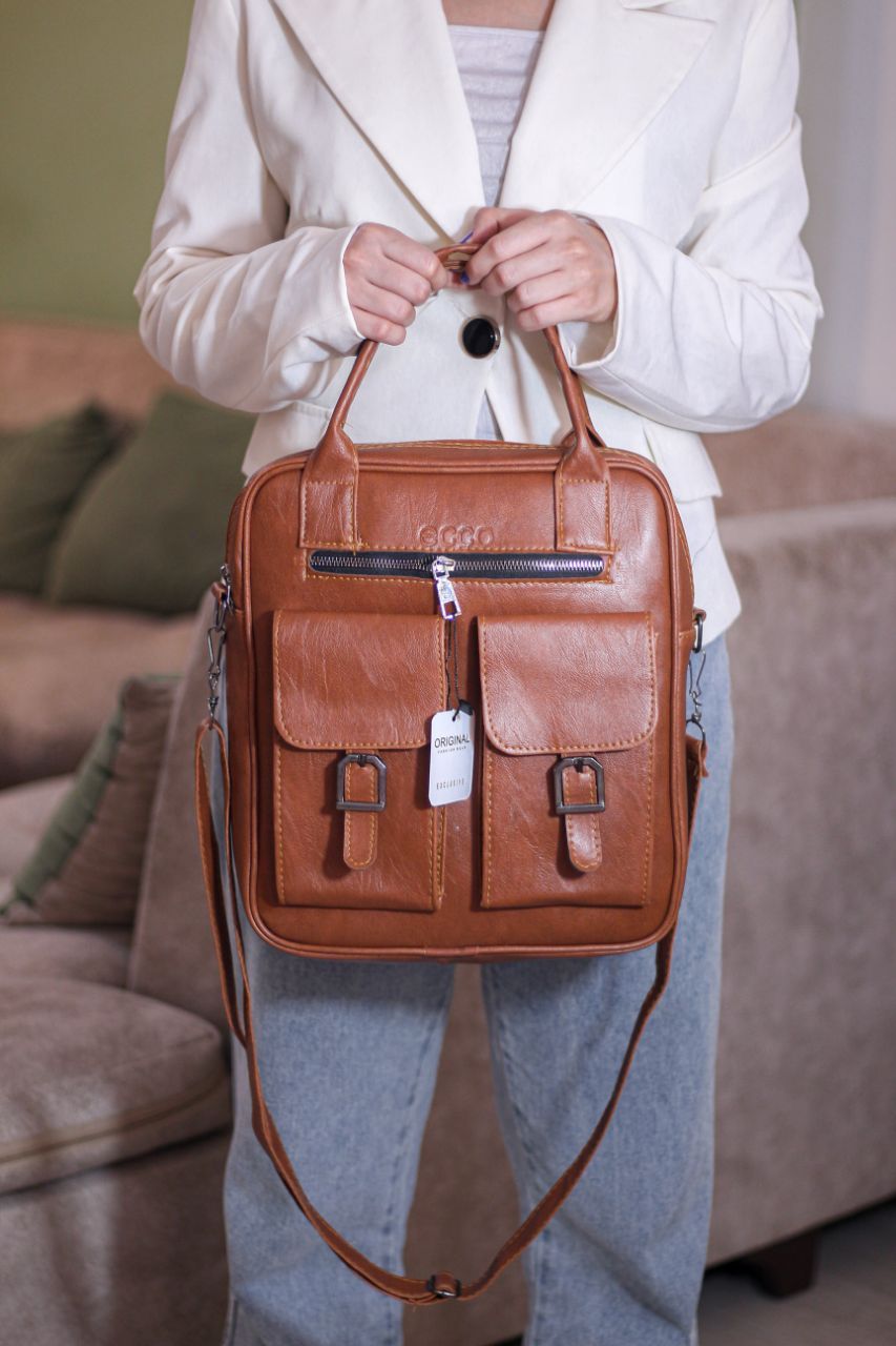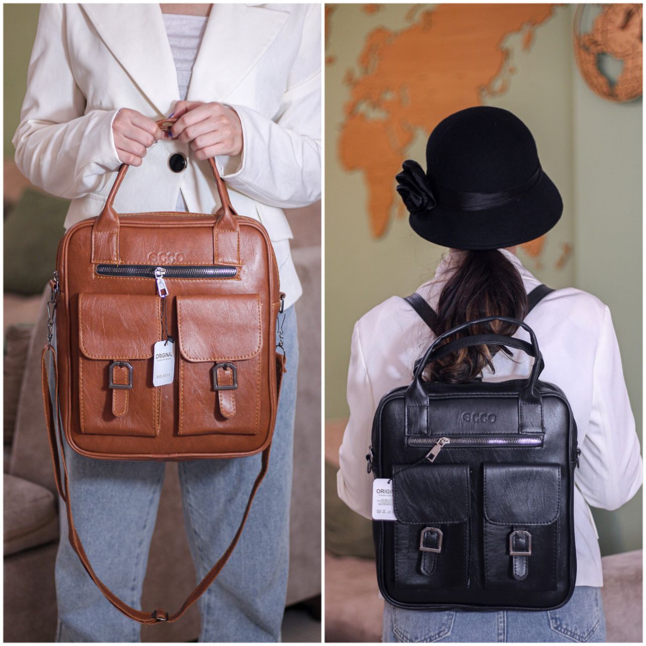 کد:  16270 #چرم_صنعتی #کوله_شو #دستی دوشی مشکی عسلی طوسی size:   32  x  28  x 8 cm